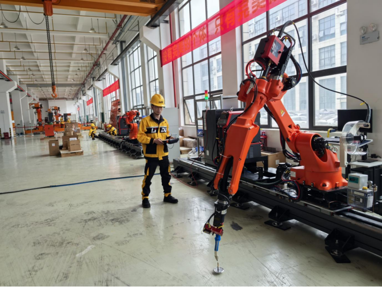 在南宁立德机器人生产基地,工人们正在对一款焊接机器人进行出厂前调试。该机器人可通过动态工业立体智能相机和智能传感器对焊接部件进行3D扫描,同时通过AI建模实时分析焊接参数,在对比设计图纸后形成最佳焊接方案,最终实现焊接“零缺陷”。